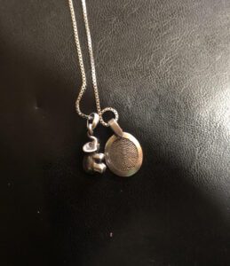 My son, Cynneca Ange’ Searcy, was conceived on September 22, 1989, and born on June 17, 1990. We lovingly called him “Dooliebug,” though some family members also referred to him as “Rude Dude.” He was my last baby—and my biggest—just one ounce shy of weighing 10 pounds. I’ll never forget my mother joking that I’d had a baby elephant. In her memory and his, I now wear a tiny elephant charm and Dooliebug’s right thumbprint around my neck.